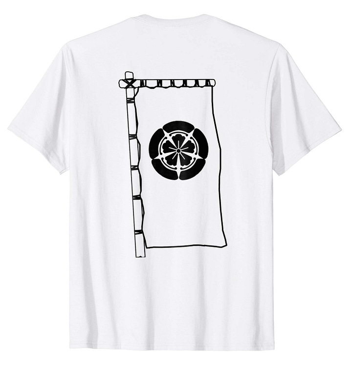 I thought it would be a neat visual pun to have t-shirts with a depiction of a soldier’s sashimono on the back with a clan mon, while on the front they would have the mon with the name of the clan, just to make it clear. I offered a range of mon to our designer with the intention that they were both from famous samurai clans, but also simple enough to duplicate without much bother. She picked the six playable factions from Shogun: Total War II — Oda, Hojo, Shimazu, Takeda, Uesugi and Imagawa. And away we went.